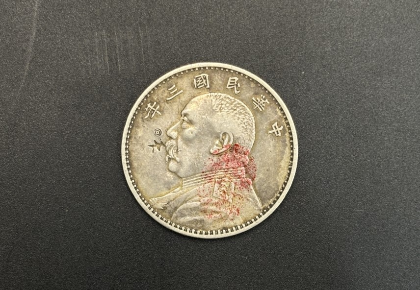 這是一枚民國三年袁世凱像壹圓“錢莊簽字版”銀幣,是民國初期極具特殊性的銀質貨幣藏品,具有較高的歷史與收藏價值。從材質與外觀來看,它以優(yōu)質銀材鑄造,整體呈現(xiàn)出銀灰色澤,表面帶有自然的氧化包漿與紅色印記,彰顯出歷史的厚重感與流通痕跡。銀幣形制規(guī)整,圓形無孔,邊道呈鋸齒狀,厚度均勻,符合民國“袁大頭”的標準規(guī)格。